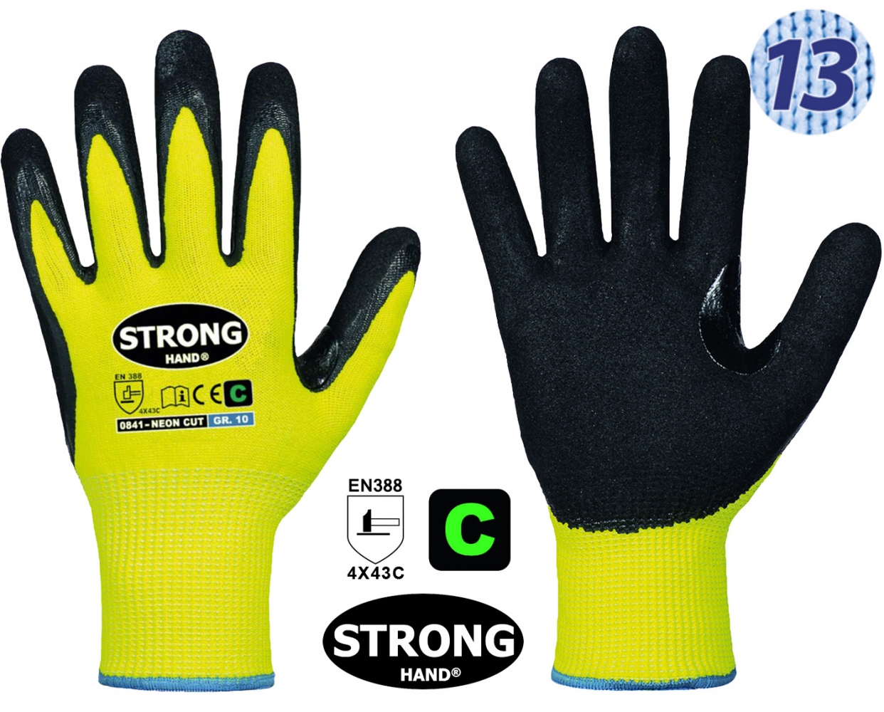 Stronghand 0841 NEON CUT 5 Nitrile-coated Cut Resistant Gloves level C