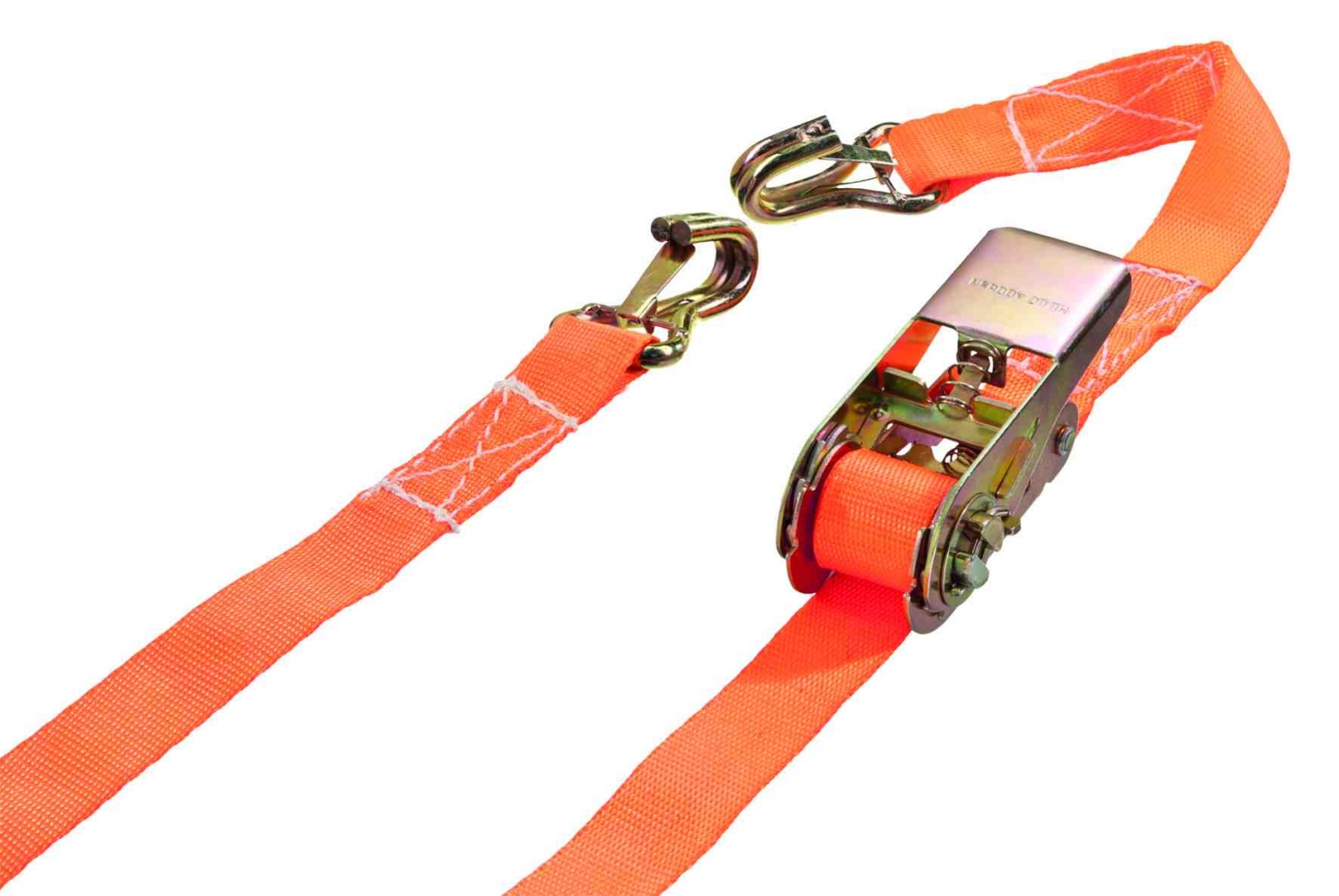 2-part cargo tie down strap, with pointed hook + locking spring + ratchetNorm: DIN EN 12 195-2Material: PolyesterStrap Width: 25 mmStrap Length: 4 mStandard Tension Force (STF): 125 daN (equivalent to 125 kg)Loading Capacity (LC) direct: 250 daN (equivalent to 250 kg)Loading Capacity (LC) strapping: 500 daN (equivalent to 500 kg)Color: orangeTÜV/GS Certified Information on product safety (Manufacturer, Contact)HELMUT FELDTMANN GmbH, Zunftstraße 28, 21244 Buchholz, 04181/2004-0,