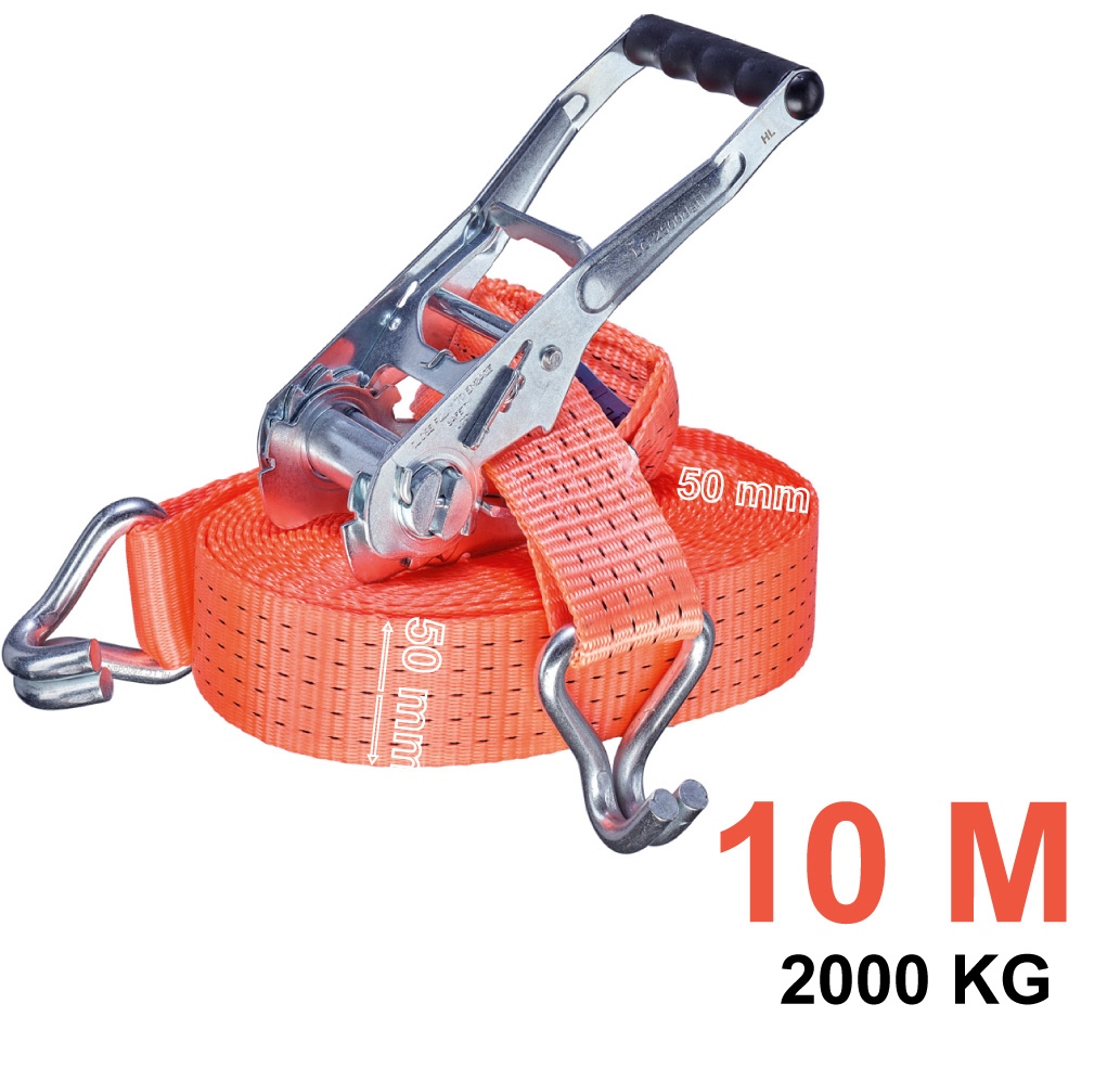 Tector 84510 Ratchet Tie Down Strap, double J hook 2000kg, 50mm, 10m