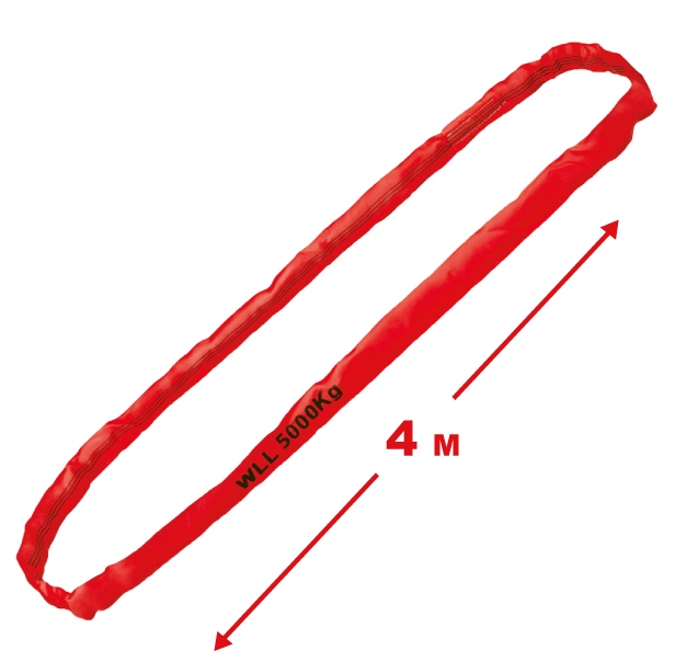 Approved Round Sling for various lifting applications – color-coded red = 5000 KGWorking load limit (WLL direct): 5000 kgSafety factor: 7:1Material: Polyester, single-ply coverCover: Red with tonnage marking (barcode; each line represents 1 tonne lifting capacity)Effective Length: 4mCircumference: 8 mLoad capacity: High load-bearing capacity with low self-weightFlexibility: Very flexible materialTÜV/GS approvedManufactured according to standard EN 1492-2 Information on product safety (Manufacturer, Contact)HELMUT FELDTMANN GmbH, Zunftstraße 28, 21244 Buchholz, 04181/2004-0,