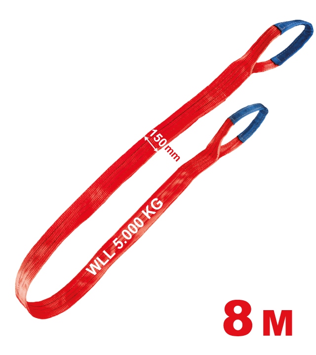 Approved webbing lifting sling for various lifting operations – color-coded red = 5000 KGWorking load limit (WLL direct): 5000 kgSafety factor: 7:1Material: Polyester, 2-ply Effective Length: 8 mWidth: 150 mmLoad capacity: High load-bearing capacity with low self-weightIdeal for workshops, logistics companies, and industrial lifting operationsSuitable for small openingsTÜV/GS approvedManufactured according to standard EN 1492-1 Information on product safety (Manufacturer, Contact)HELMUT FELDTMANN GmbH, Zunftstraße 28, 21244 Buchholz, 04181/2004-0,