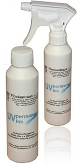 UV Permanent inks to label, sign, all materials like metal, glass, plastic, wood and more.Very high luminosity, when UV light falls on the marked object.In ultraviolet light (366nm, black light) the brilliant blue marking is easily seen. It is invisible in day light.Permanent ink, wipe and waterproof, Xylol free, dries quickly (approx. 5 secs).Excellent for secrity applications.Excellent for security applications.Refill in 250 ml and 1 litre bottles available.Pump bottle (250ml) with atomizer produces very fine spray results. Spray volume per stroke : 1,2 ml ± 0,1.Hazard Information (CLP)Signal Word: Danger.Hazard Statements (H-phrases)H225: Highly flammable liquid and vapor.H319: Causes serious eye irritation.H336: May cause drowsiness or dizziness.Precautionary Statements (P-phrases)Prevention:P210: Keep away from heat, hot surfaces, sparks, open flames, and other ignition sources. No smoking.P280: Wear protective gloves/protective clothing/eye protection/face protection.Storage:P403+P235: Store in a well-ventilated place. Keep cool.Disposal:P501: Dispose of contents/container in accordance with local/national/international regulations.Additional Labeling (EUH-phrases)EUH066: Repeated exposure may cause skin dryness or cracking.Additional Relevant InformationFormation of explosive/flammable vapor-air mixtures is possible when used. Information on product safety (Manufacturer, Contact)Flockenhaus GmbH & Co. KG, Frankfurter Str. 5, 36124 Eichenzell Fulda, GERMANY, +49 661 72881, , www.flockenhaus.de