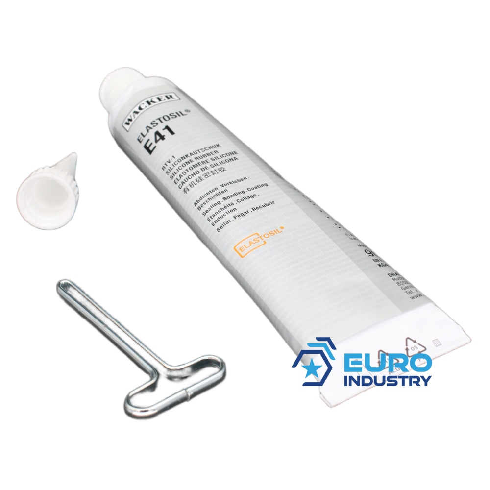 ELASTOSIL® E41 TRANSPARENT is a flowable, one-component silicone rubber with excellent mechanical properties, which cures at room temperature under the influence of atmospheric moisture (RTV-1).Pack Size: 90 ml TubeAlso available in: 310 ml cartridgeApplicationsMultipurpose sealant and adhesive for general industry and electronics for FIPG applicationsParticularly suitable as adhesive on cured rubber or silicone coated textiles like seam sealingFeaturesExcellent adhesion on cured silicone rubberSelf-levellingSolvent containingHigh-tear gradeRecommended service temperature from -45 °C to 180 °CMax. recommended short term peak temperature exposure 200°CTechnical specificationsProperties not vulcanizedColortransparent Density, 23 °C1,08 g/cm³Dynamic viscosity D = 1 1/s, 25 °C100000 mPa·sDynamic viscosity D = 25 1/s, 25 °C80000 mPa·sSkin formation time10 – 20 minCuring time, 23 °C | 50 % r.h12 h/mm Properties vulcanizedCuring Conditions: 14 days at 23 °C and 50 % rel. humidity, 2 mm sheet, no post-curingColortransparent Density in water, 23 °C1,12 g/cm³Shore A40 Tear strength, Type 3 / 23°C / 2mm6,0 N/mm²Elongation at break, Type 3 / 23°C / 2mm350 %Fields of applicationAppliances Industry, e.g. microwave ovensIndustrial Assembly, e.g. Automotive, Aerospace, RailwayReady-to-Use Silicone Sealants – General ApplicationsSpecial Purpose Sealants Wacker ELASTOSIL® E-41 TRANSPARENT, ELASTOSIL E41, E/41Hazard Warnings (CLP)Signal word: DangerHazard Statements (H-phrases)H225: Highly flammable liquid and vapor.H315: Causes skin irritation.H319: Causes serious eye irritation.H361d: Suspected of damaging the unborn child.H373: May cause damage to organs through prolonged or repeated exposure.H412: Harmful to aquatic life with long-lasting effects.Safety Statements (P-phrases)Prevention:P201: Obtain special instructions before use.P210: Keep away from heat, hot surfaces, sparks, open flames, and other ignition sources. No smoking.P233: Keep container tightly closed.P243: Take precautionary measures against static discharge.P260: Do not breathe vapor/aerosol.P273: Avoid release to the environment.P280: Wear protective gloves/protective clothing/eye protection.Response:P302+P352: If on skin: Wash with plenty of water and soap.P305+P351+P338: If in eyes: Rinse cautiously with water for several minutes. Remove contact lenses, if present and easy to do. Continue rinsing.P313: Get medical advice/attention.Storage:P405: Store locked up.Other HazardsNo other hazards are known.Endocrine-disrupting properties – human health: No relevant components according to REACH regulation.Endocrine-disrupting properties – environment: No relevant components according to REACH regulation.×Hazardous materials. The forwarding charges may be raised, if shipping to: DE, AT, NL, GB, CH, CZ, IT, ES, FI, NO, BE, IE, RO, PL, FR, PT, LU, DK, LI, GR, SE, SK, BG, SI, CA, LT, EE, LV, HR, SA, Information on product safety (Manufacturer, Contact)Wacker Chemie AG, Gisela-Stein-Strasse 1, 81671 München, GERMANY, +49 89 6279-0, , www.wacker.com
