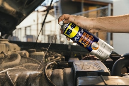WD‑40 Specialist® Machine & Engine Degreaser Foaming SprayWD-40 Specialist Machine & Engine Degreaser Foaming Spray makes equipment run smoother, last longer and look like new. This aerosol is a low-residue water-based formula with foaming action that penetrates deep into crevices for completely clean results. Equipped with a nozzle capable of powerful long-distance sprays up to 5 feet and also includes a precision stream straw for controlled application. Quickly remove grease, oil, dirt, grime, tar, adhesives, and more without engine disassembly. Works great on auto & truck engines, tractors, forklifts, gears & chains, industrial machinery, farm equipment, and other metal tools. CharacteristicsDeep Penetrating Foam ActionQuickly removes grease, oil, dirt & grime A water-based degreaser with performance superior to solvent-based cleaners Sprays up to 5 feet away 50-state VOC Compliant Low Residue NSF C1 Reg# 146737Field of applicationAutomotive & Truck Engines TractorsForklifts Gears & Chains Industrial Machinery Farm Equipment Power Equipment Other Metal ToolsAdvantages of WD-40 Smart StrawWith the Smart Straw applicator, you’ve got two ways to spray; use the flip up straw for hard to reach areas, such as inside chains,locks or rollers, then flip it down to use the wide angle spray eye for area coverage on surfaces. Whichever way you need to spray,you can rely on the clever 360° valve to work efficiently at every angle, even upside down.Technical specificationsAppearance: Translucent, non-viscous liquidDensity: 0.93-0.96Operating temperature range: Developed for use at room temperatureSpray force: 1.5 – 2.4g / sSolubility: Partly solubleFlammability: Extremely flammableMaterial compatibility: Variety of surfaces, including metalsASTM D-4488 A2, A3, A6 (total cleaning power): 140Hazard Warnings (CLP)Signal word: DangerHazard Statements (H-phrases)H336: May cause drowsiness or dizziness.H222: Extremely flammable aerosol.H229: Pressurized container: May burst if heated.Safety Statements (P-phrases)Prevention:P101: If medical advice is needed, have product container or label at hand.P102: Keep out of reach of children.P210: Keep away from heat, hot surfaces, sparks, open flames and other ignition sources. No smoking.P211: Do not spray on an open flame or other ignition source.P251: Do not pierce or burn, even after use.P261: Avoid breathing vapours or spray.P271: Use only outdoors or in a well-ventilated area.Response:P312: Call a POISON CENTER or doctor if you feel unwell.Storage:P405: Store locked up.P410+P412: Protect from sunlight. Do not expose to temperatures exceeding 50°C.Disposal:P501: Dispose of contents/container to an approved waste disposal plant.Additional Information (EUH-phrases)EUH066: Repeated exposure may cause skin dryness or cracking.Other Relevant InformationFormation of explosive mixtures possible without sufficient ventilation.1-Methoxy-2-propanol.Hydrocarbons, C9-C11, n-alkanes, isoalkanes, cycloalkanes, <2% aromatics.2-Methoxy-1-methylethyl acetate.Other HazardsThe mixture contains no vPvB substances (vPvB = very persistent, very bioaccumulative).The mixture contains no PBT substances (PBT = persistent, bioaccumulative, toxic).The mixture contains no substances with endocrine-disrupting properties.×Hazardous materials. The forwarding charges may be raised, if shipping to: DE, AT, NL, GB, CH, CZ, IT, ES, FI, NO, BE, IE, RO, PL, FR, PT, LU, DK, LI, GR, SE, SK, BG, SI, CA, LT, EE, LV, HR, SA, Information on product safety (Manufacturer, Contact)WD-40 Company Limited Zweigniederlassung Deutschland, Siemensstrasse 21, 61352 Bad Homburg, GERMANY, +49 6172 677 450, , www.wd40.de