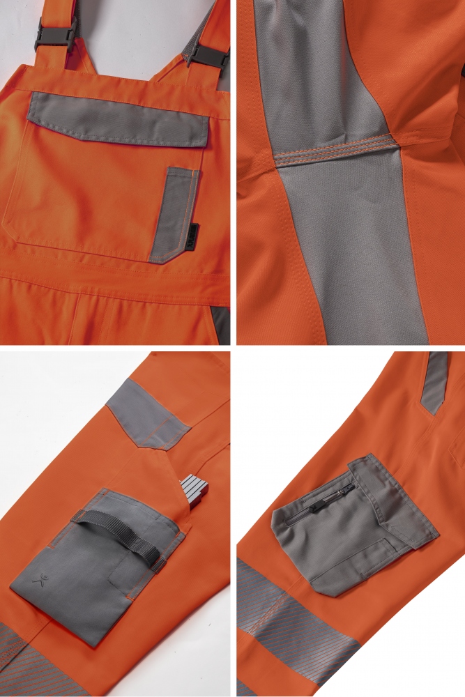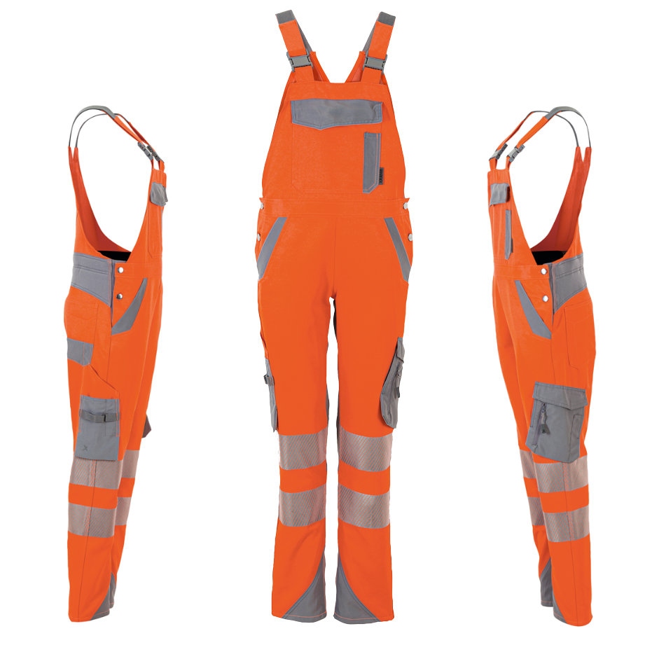 Women’s High Visibility Dungarees 36-54 orange/zinc, Planam 5935